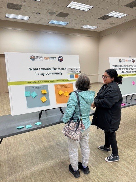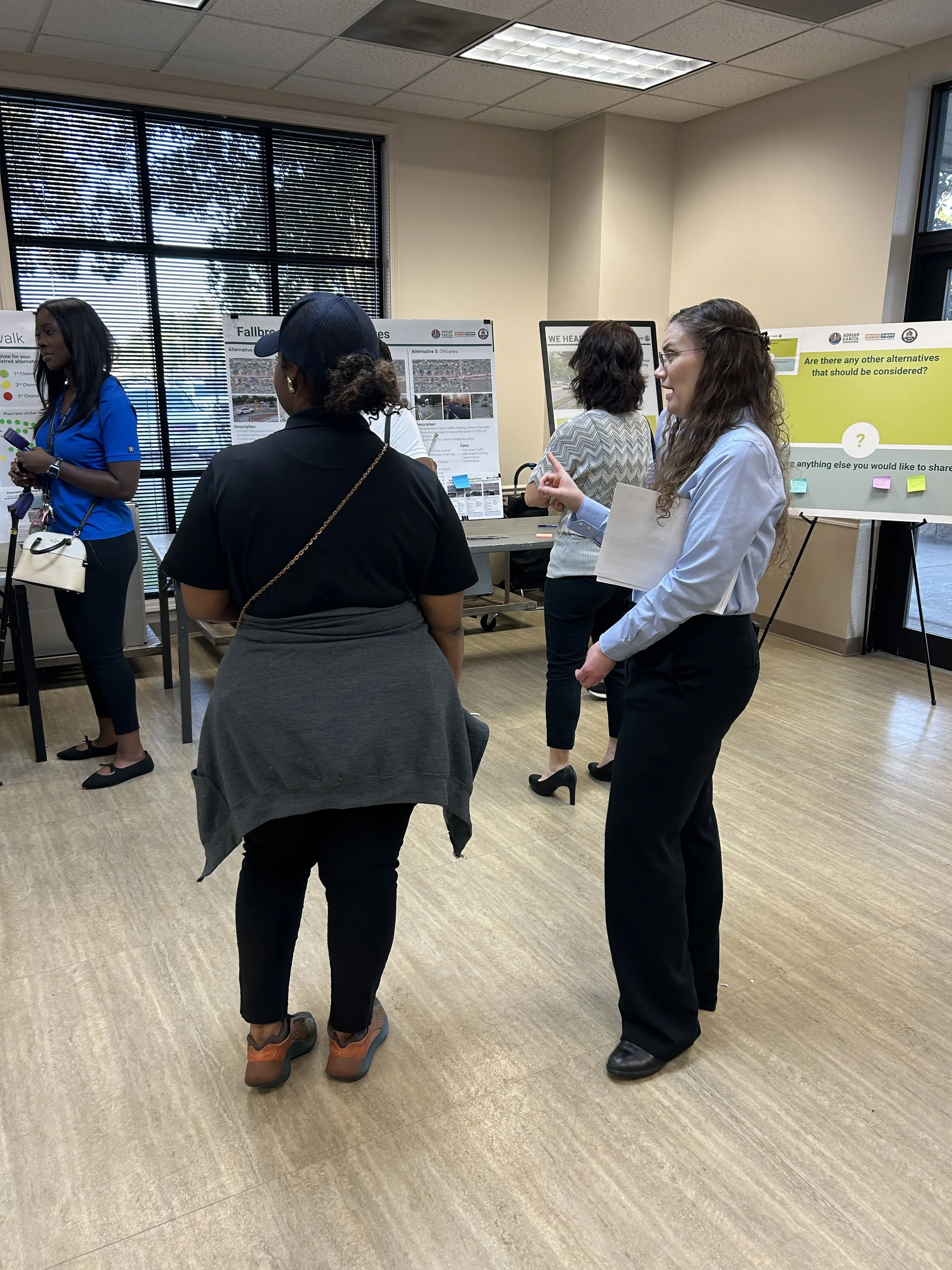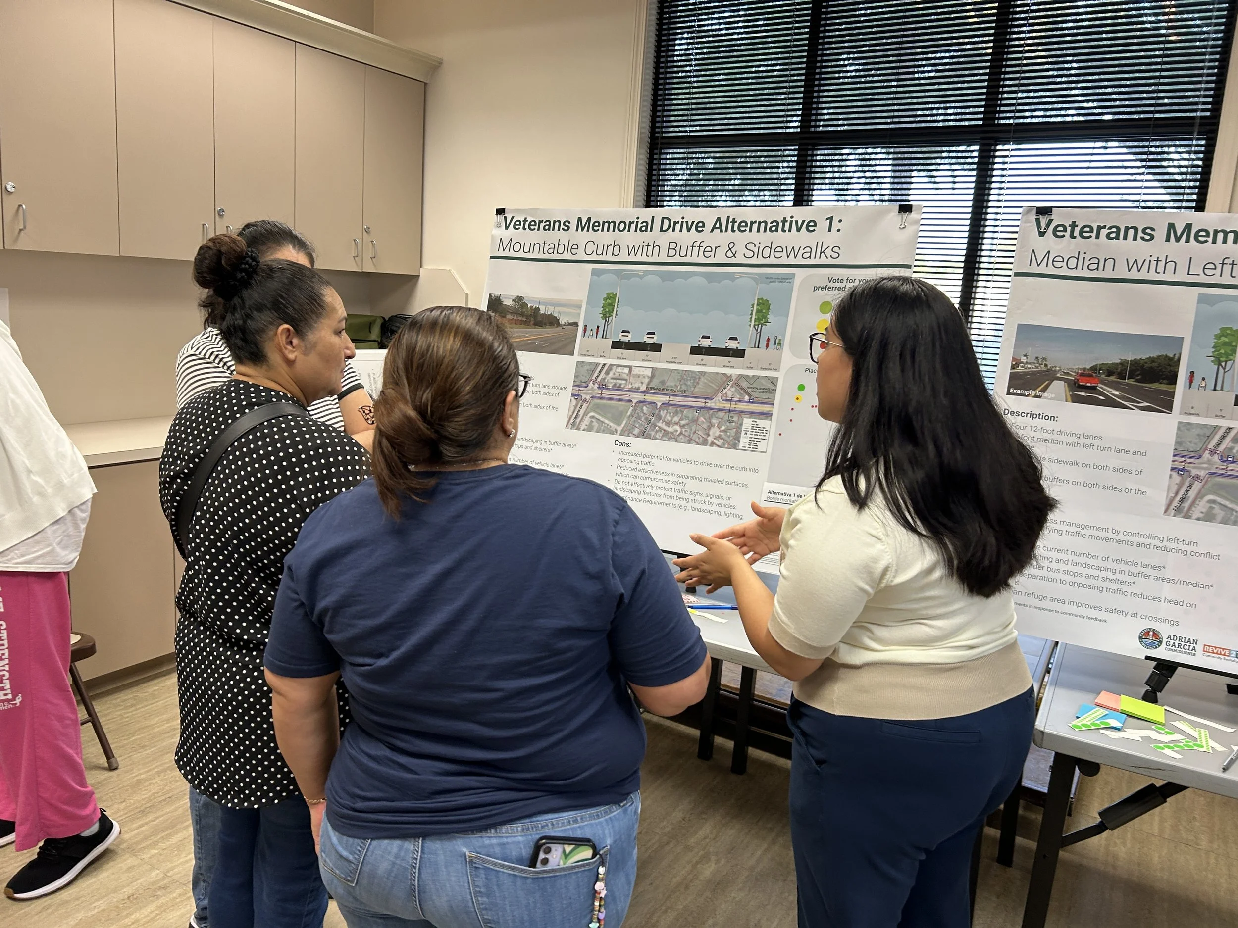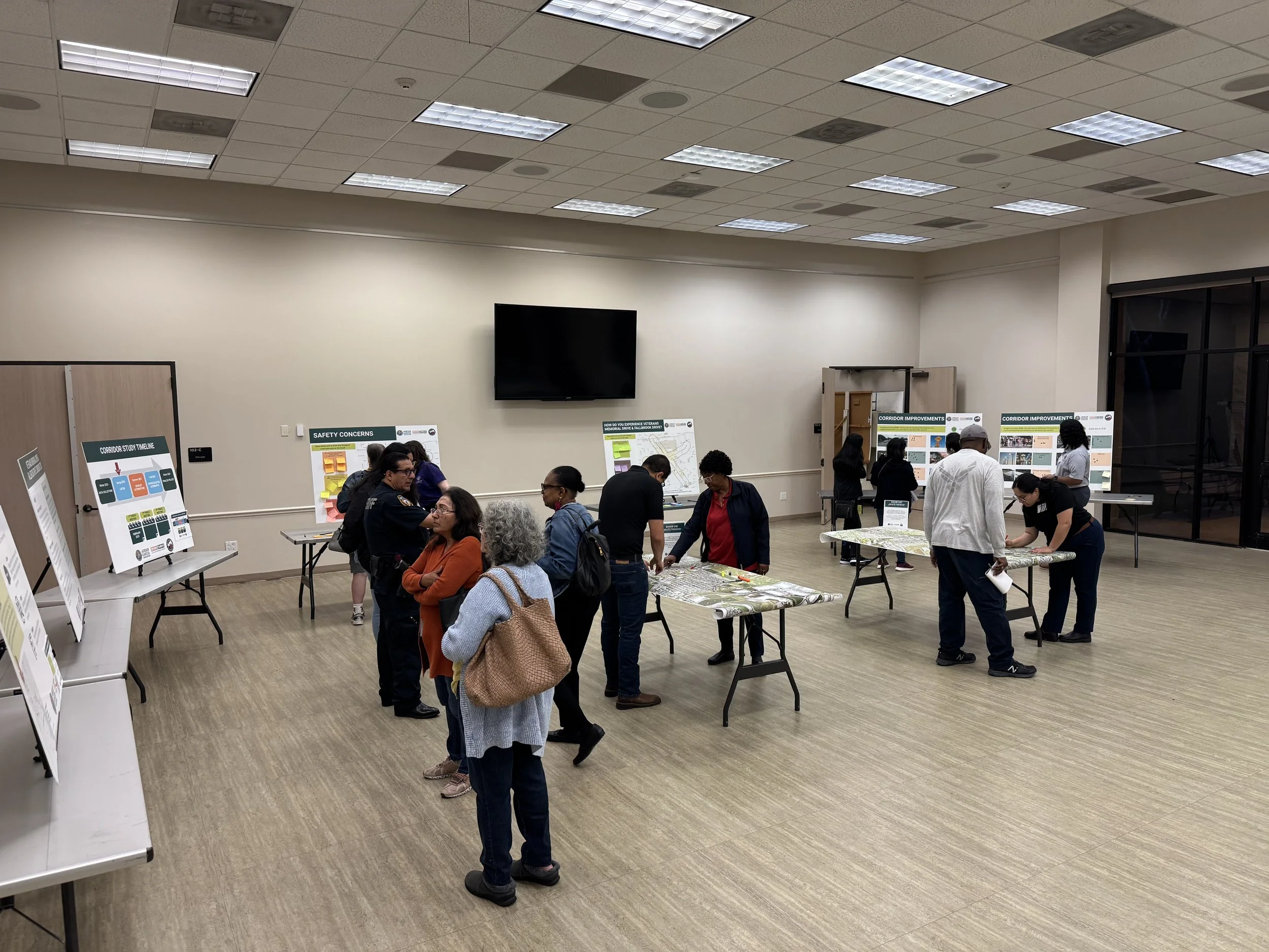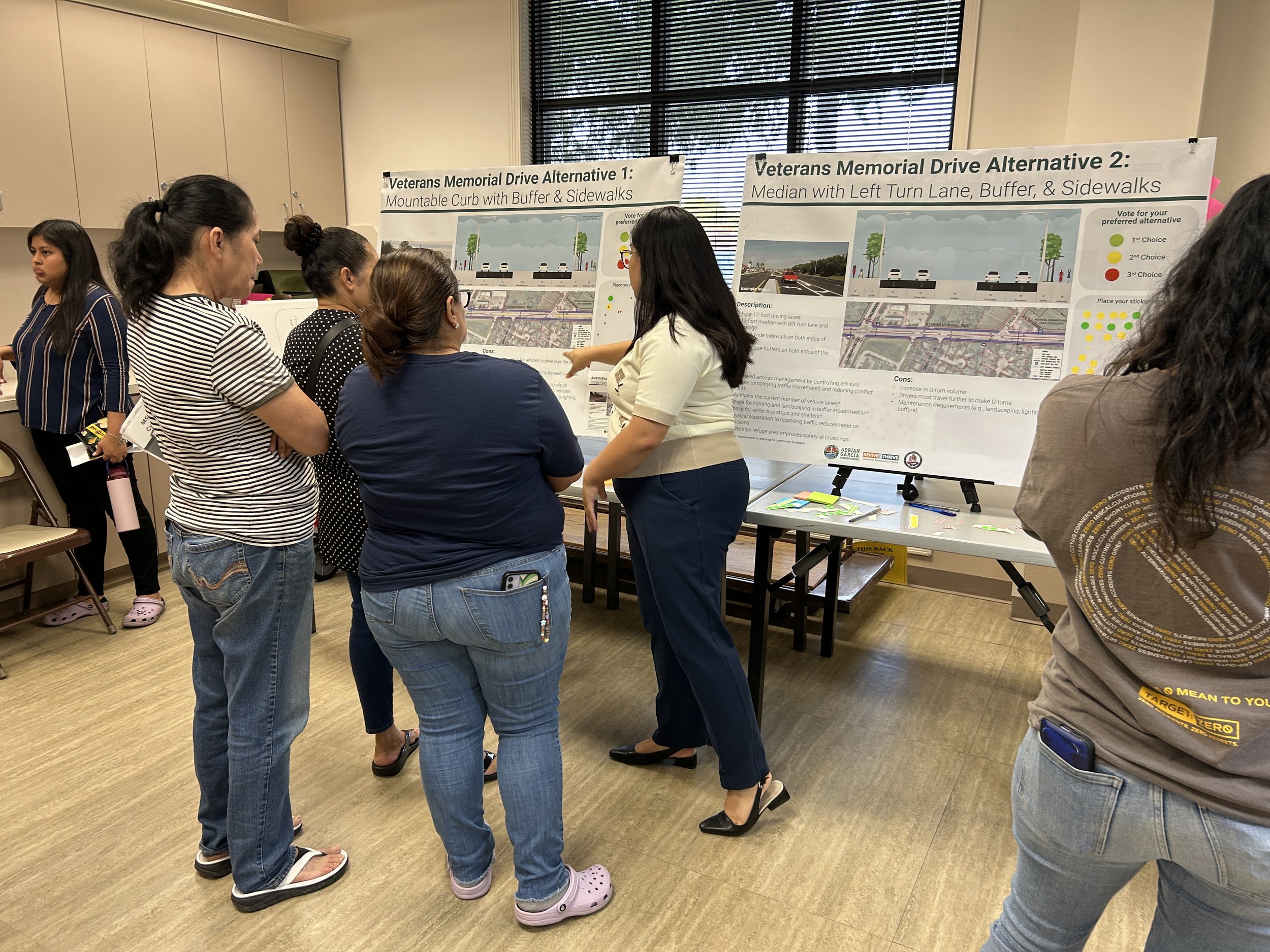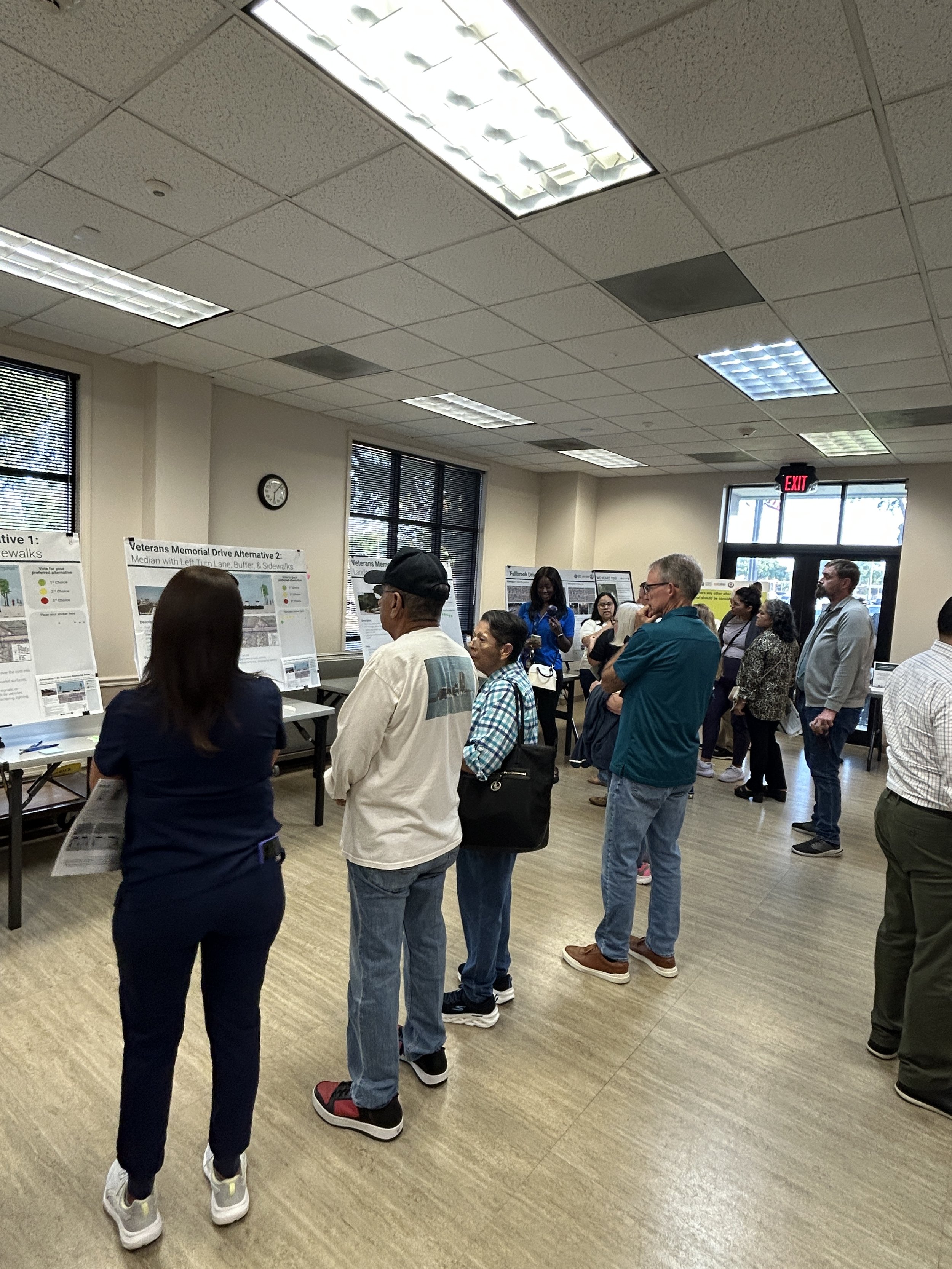 Over 50 individuals joined us for the second Community Meeting, held August 12, 2025, at Mangum-Howell Community Center. Participants had the opportunity to provide feedback on three design alternatives for Veterans Memorial Drive, three traffic calming options on Fallbrook Drive, as well as completing a survey and comment card.